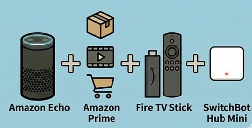 Amazon Echo、Fire TV、SwitchBotと連携する機器が3つあり。