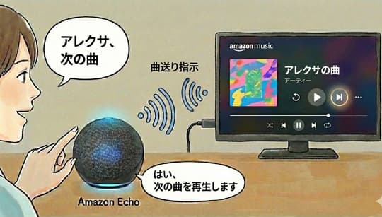 - 曲名や歌手、プレイリストなどを、アレクサ(Amazon Echo)への声掛けで再生