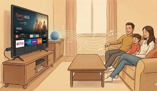 Fire TV Stickは単体だけでも、コンテンツを快適に楽しめますが、Amazon EchoとFire TV Stickを連携することで、ハンズフリー操作が可能になります。